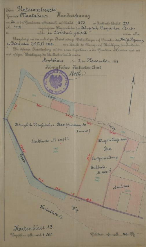 Auszug aus dem Duplikat des Stockbuches Juli 1889; Vermessungsurkunde November 1888; Vermessung der Katasterparzellen