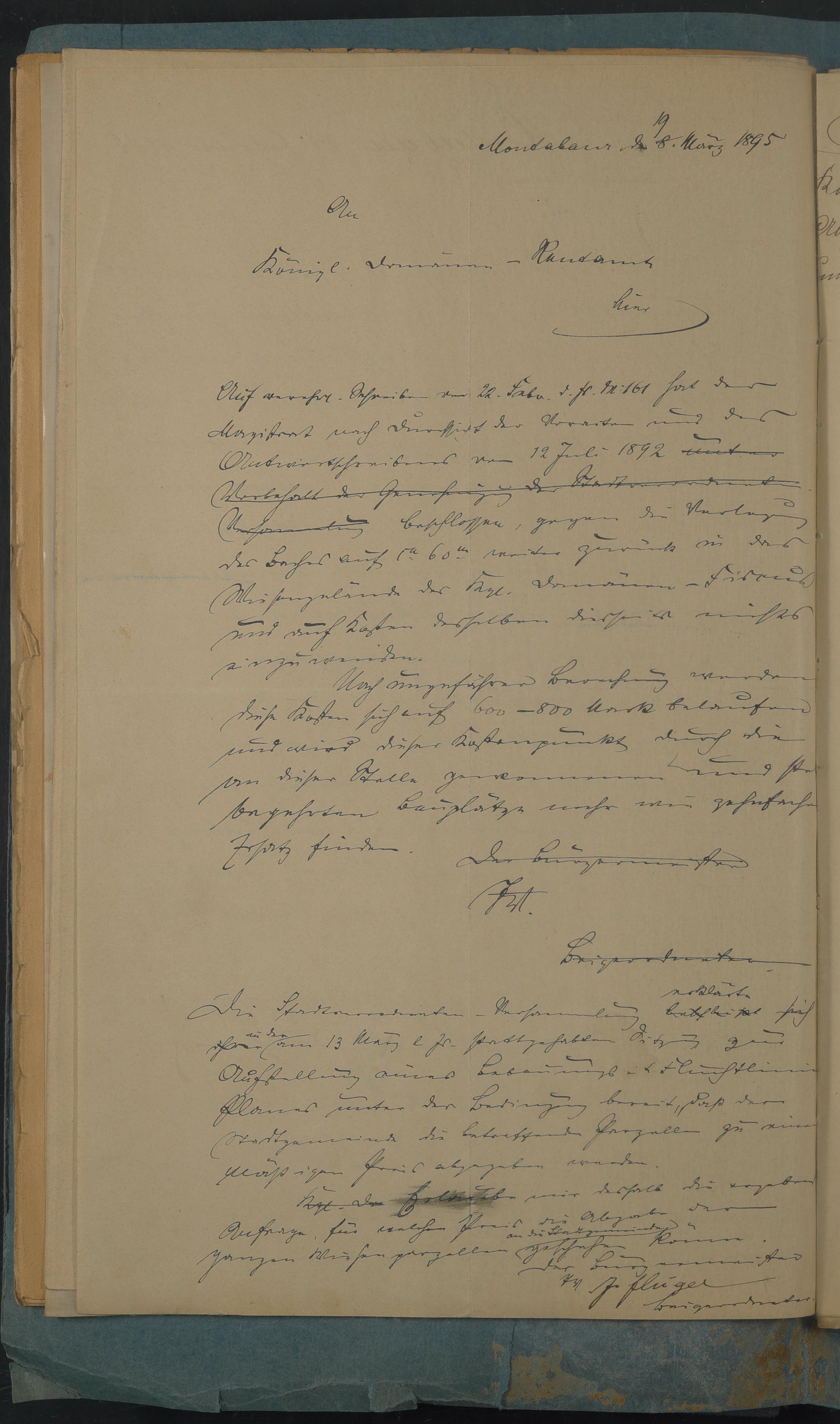 Urkunde zum Vertrag zwischen der Stadtgemeinde Montabaur und dem Domänenrentenamt