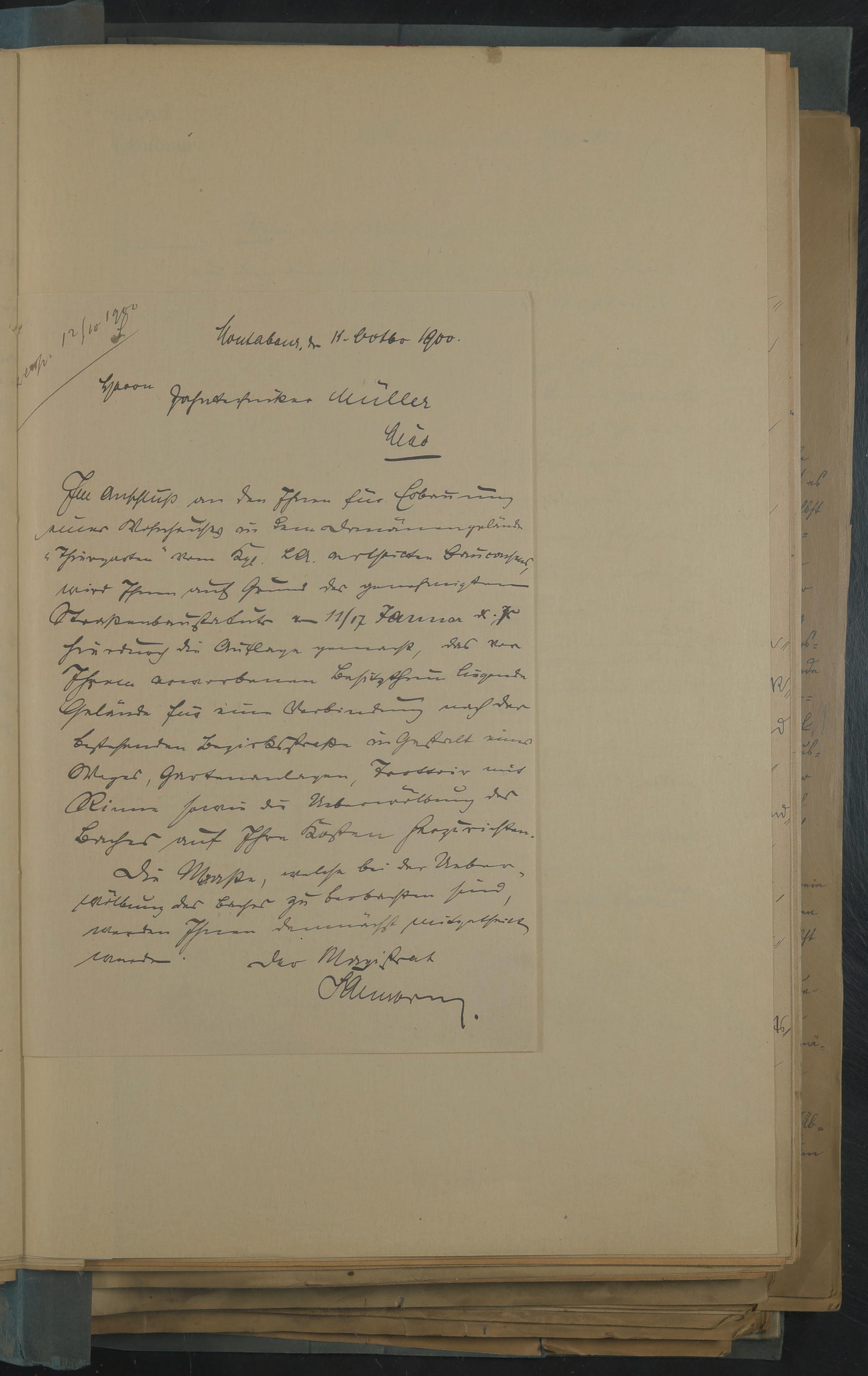 Straßenbaugesuch im Tiergartengelände; Lageplan des Grundstücks Müller
