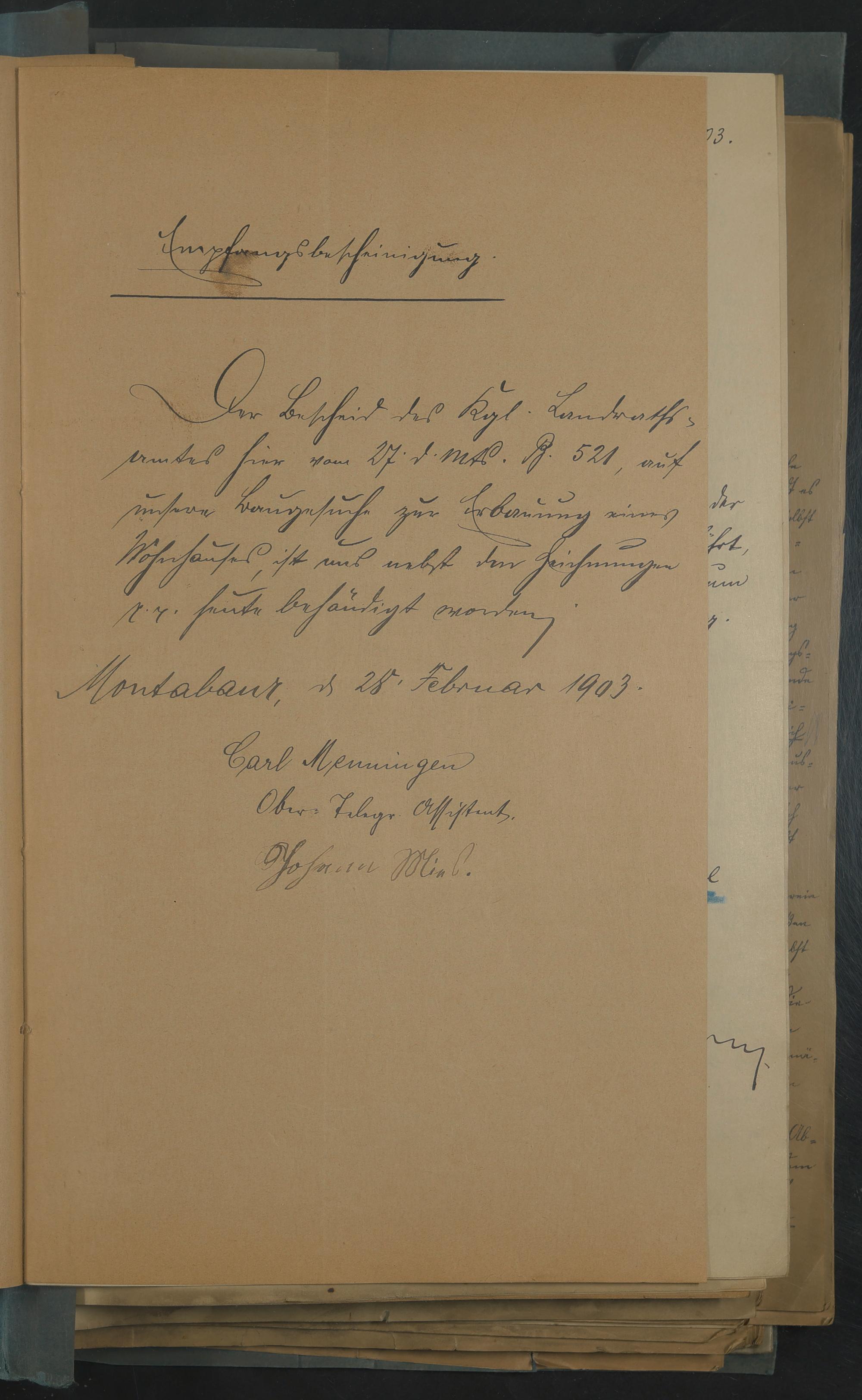 Beschwerdebrief von Carl Peter Menningen; Schriftverkehr zum Straßenbau