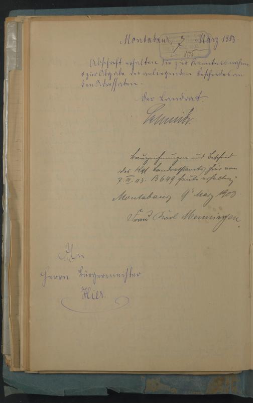 Auszug aus dem Duplikat des Stockbuchs Oktober 1903