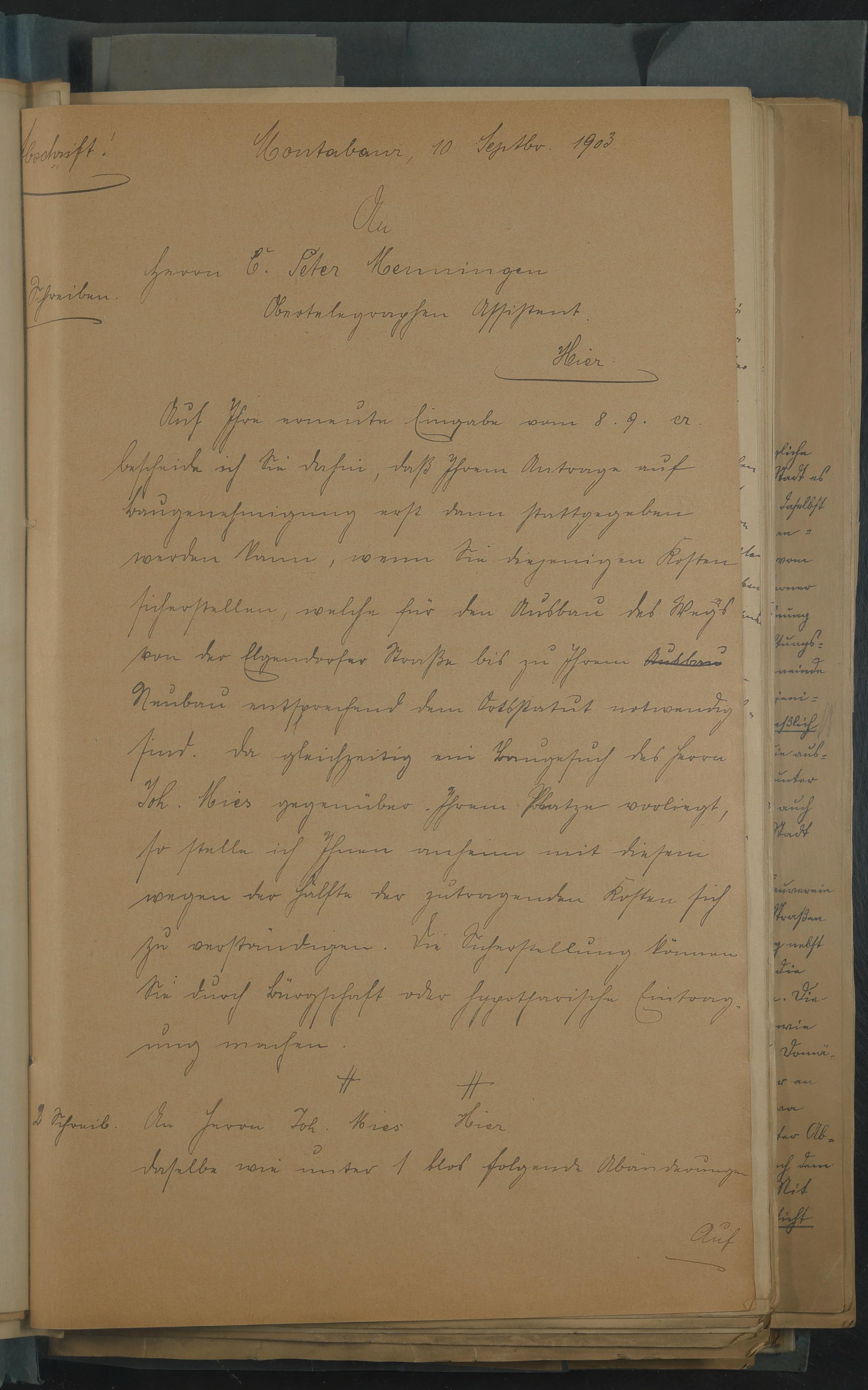 Auszug aus dem Duplikat des Stockbuchs Oktober 1903