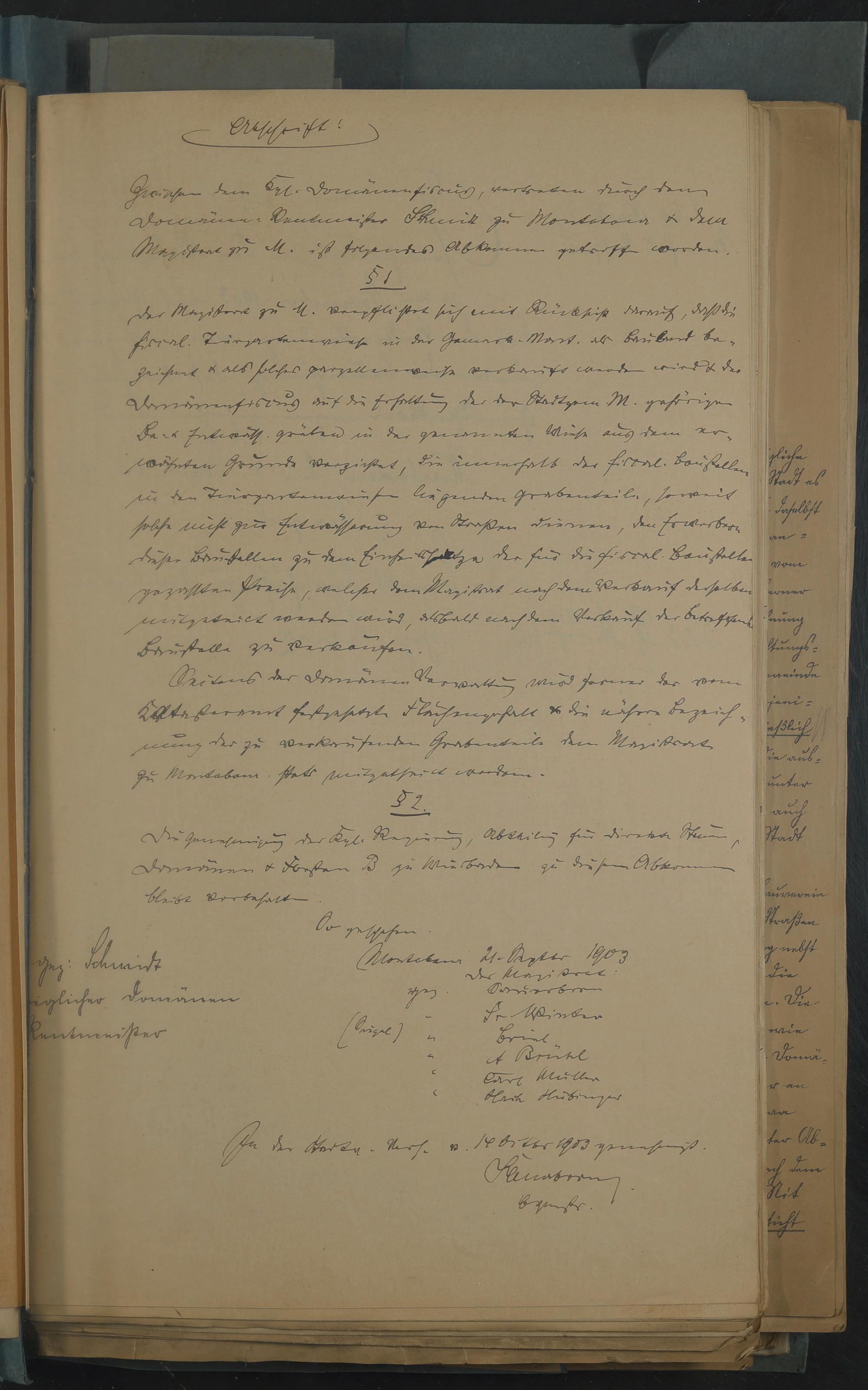 Auszug aus dem Duplikat des Stockbuchs Oktober 1903