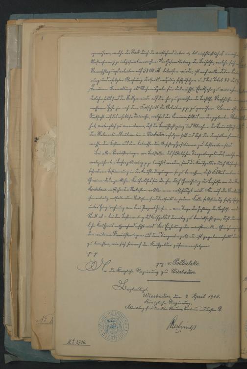 Urkunde zum Vertrag zwischen der Stadtgemeinde Montabaur und dem Domänenrentenamt