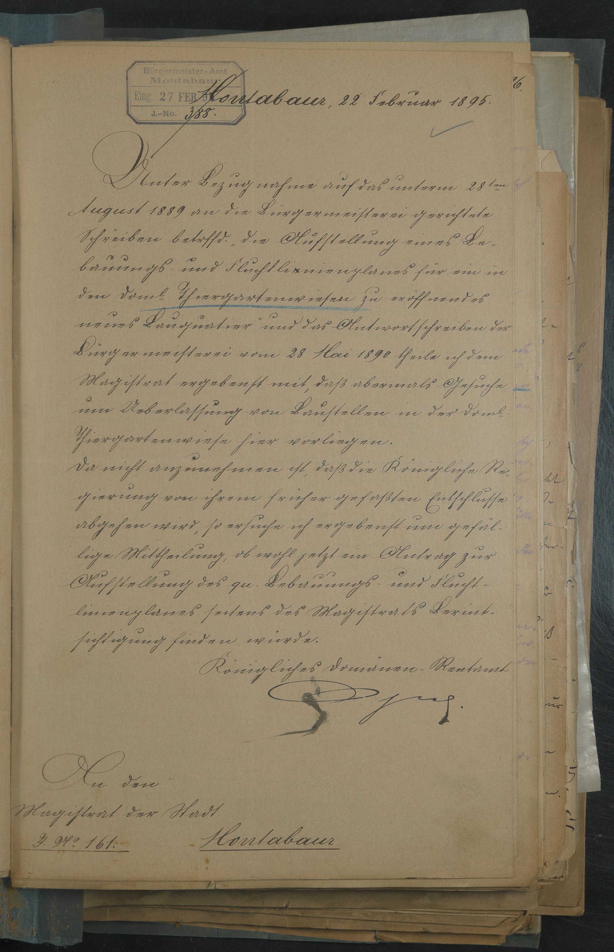 Urkunde zum Vertrag zwischen der Stadtgemeinde Montabaur und dem Domänenrentenamt