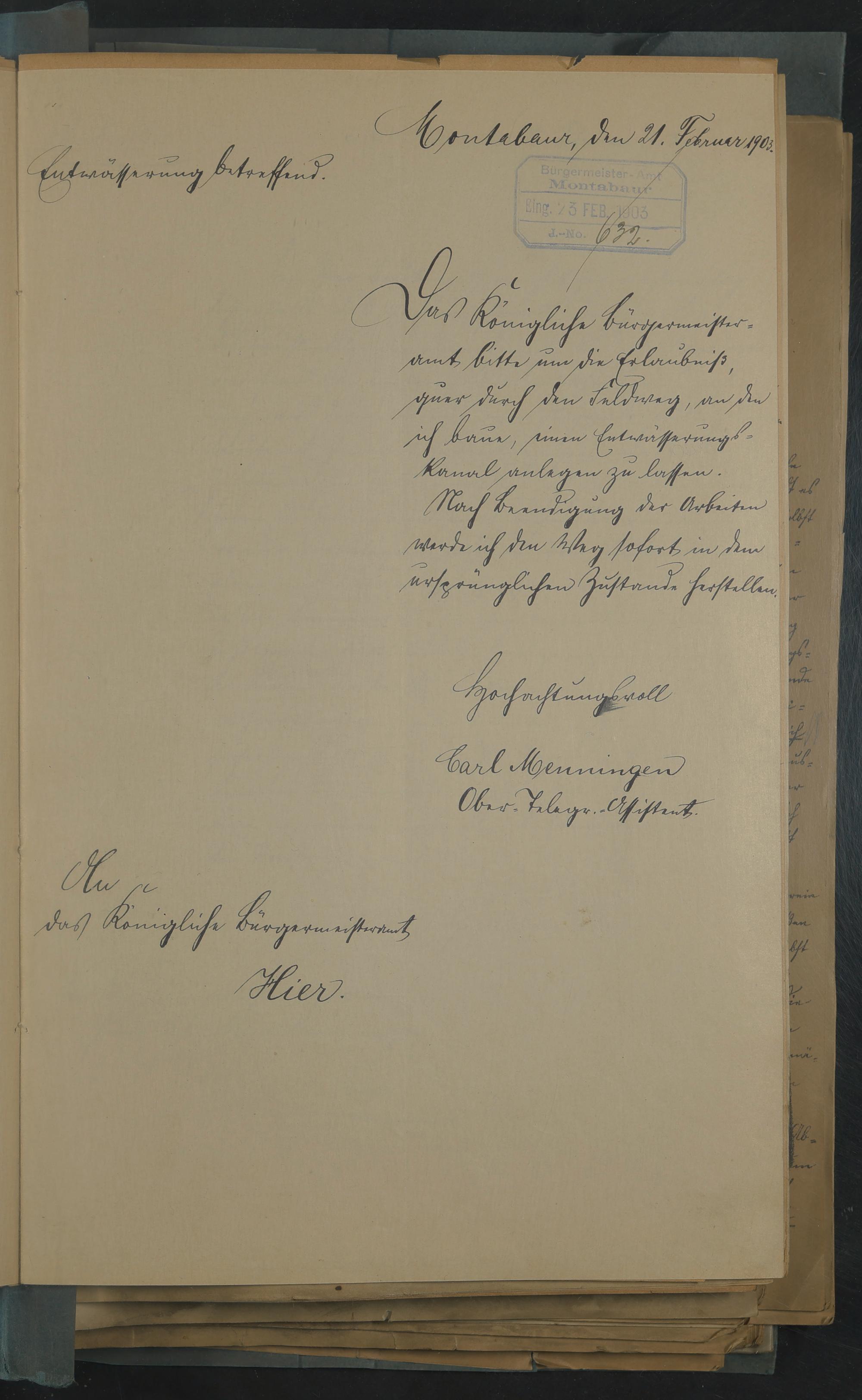 Urkunde zum Vertrag zwischen der Stadtgemeinde Montabaur und dem Domänenrentenamt