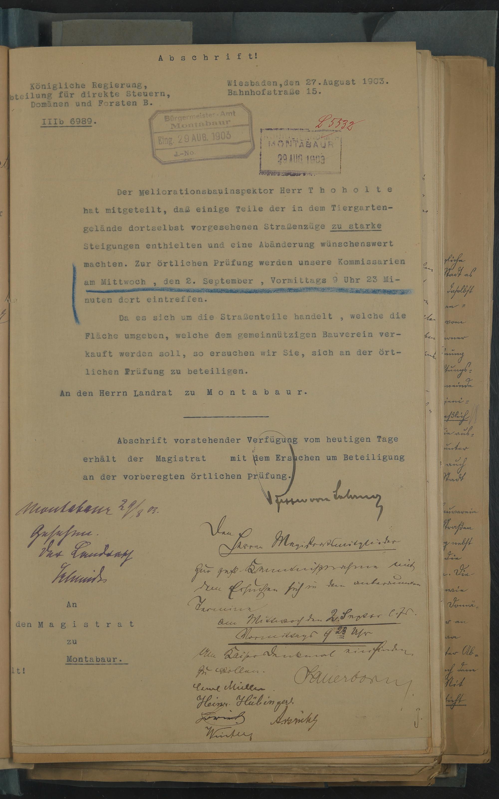 Tauschvertrag zwischen der Stadtgemeinde Montabaur und dem Domänenrentenamt
