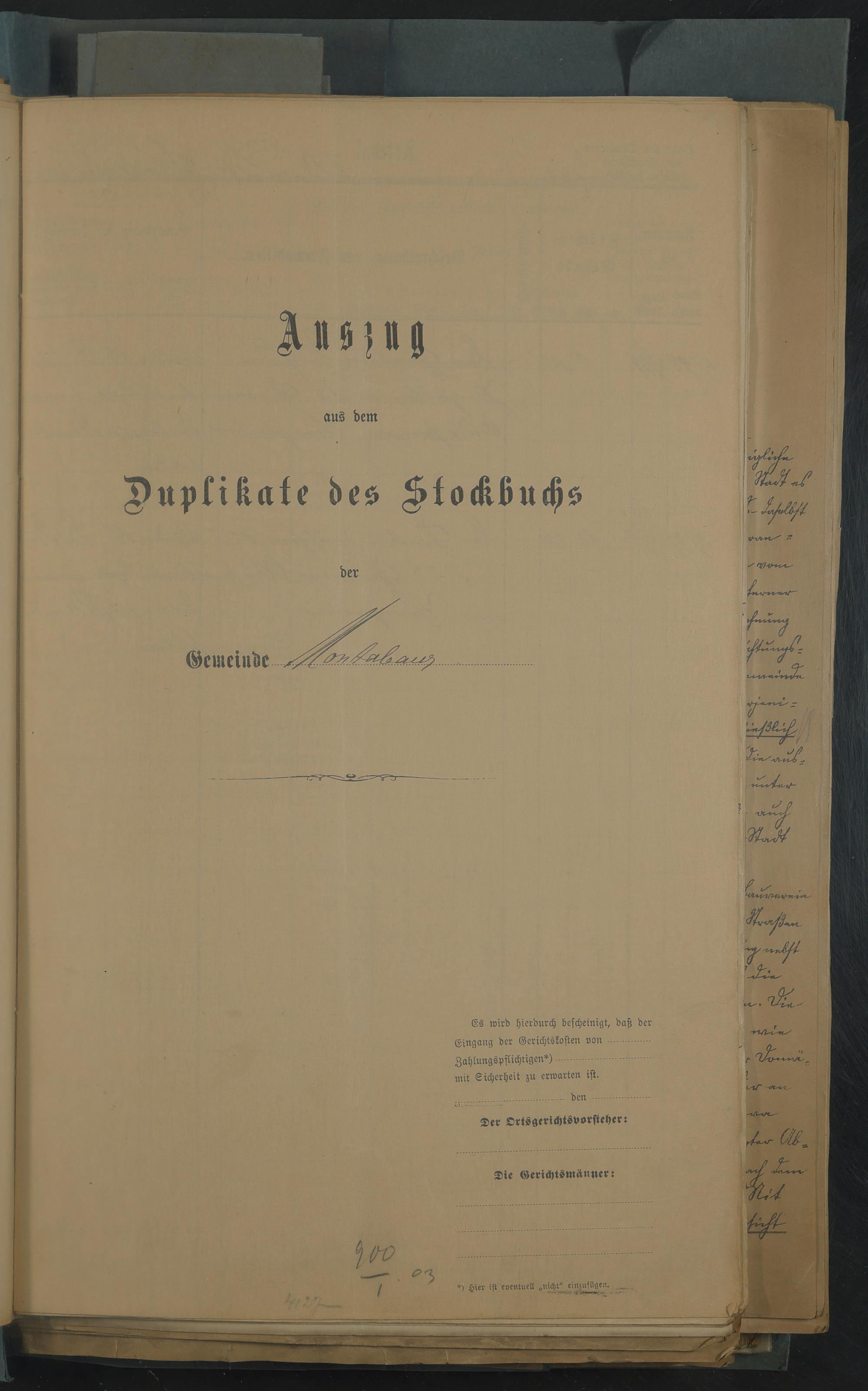 Auszug aus dem Duplikat des Stockbuchs Oktober 1903