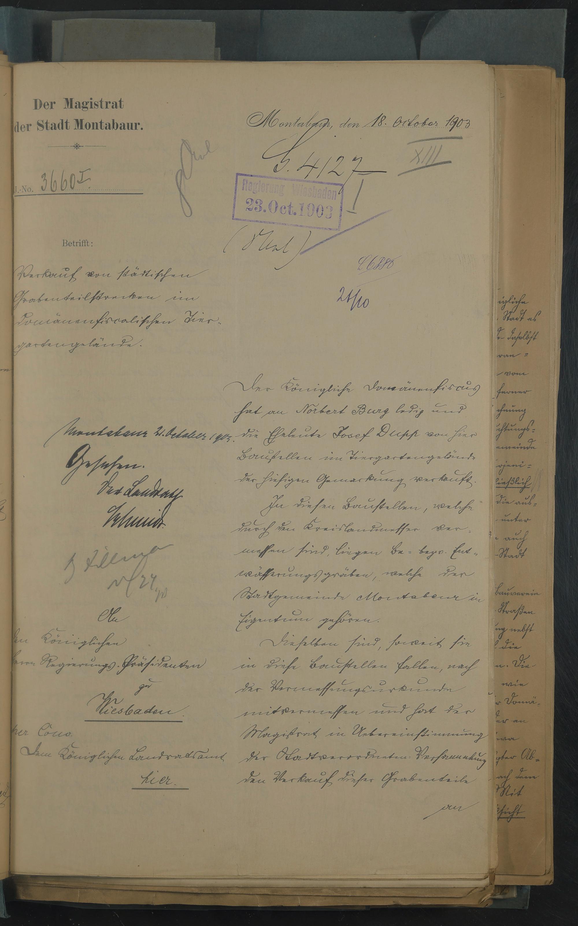 Urkunde zum Vertrag zwischen der Stadtgemeinde Montabaur und dem Domänenrentenamt