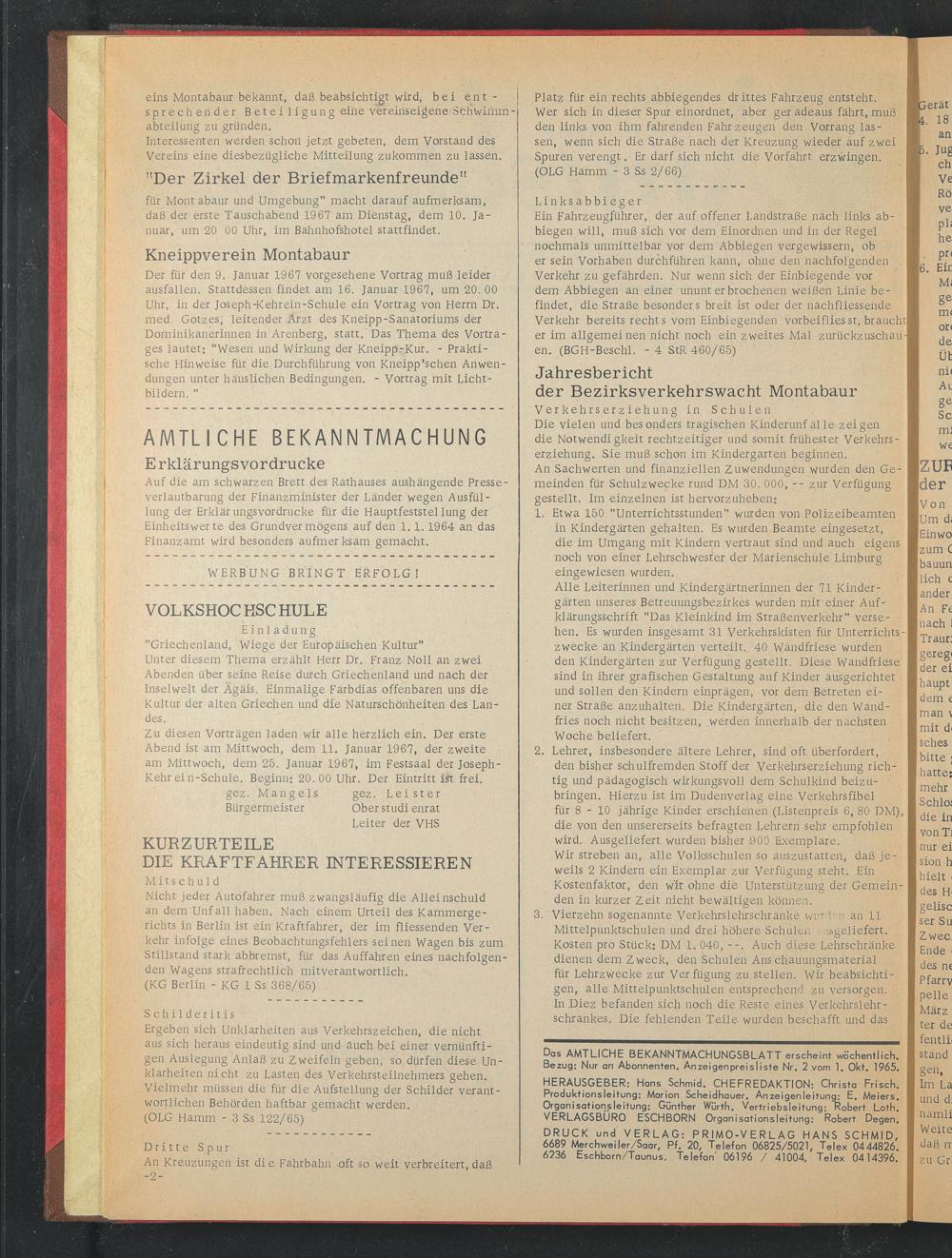 Das AMTLICHE BEKANNTMACHUNGSBLATT erscheint wöchentlich. Bezug: Nur an Abonnenten. Anzeigenpreisliste Nr. 2 .vom 1. Okt. 1965.