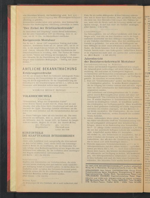 Zu diesen Vorträgen laden wir alle herzlich ein. Der erste Abend ist am Mittwoch, dem 11. Januar 1967, der zweite am Mittwoch, dem 25. Januar 1967, im Festsaal der Joseph- Kehr ei n-Schule. Beginn; 20.00 Uhr. Der Eintritt ist frei, gez. Mangels gez. Leister