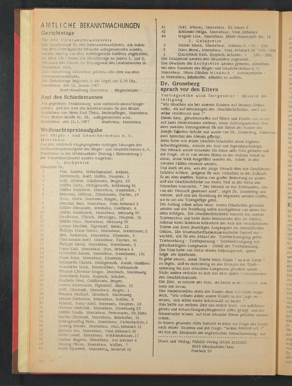 Die Gerichtstage beginnen in der Regel um 9. 00 Uhr. Montabaur, den 12. Januar 1967