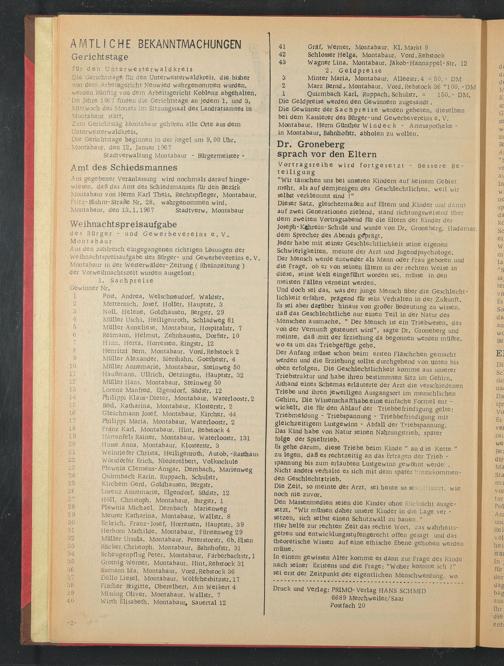 Die Gewinner der Sachpreise werden gebeten, dieselben bei dem Kassierer des Bürger-und Gewerbevereins e.V. Montabaur, Herrn Günther W i nd ec k - Amtsapotheke- in Montabaur, Bahnhofs», abholen zu wollen.
