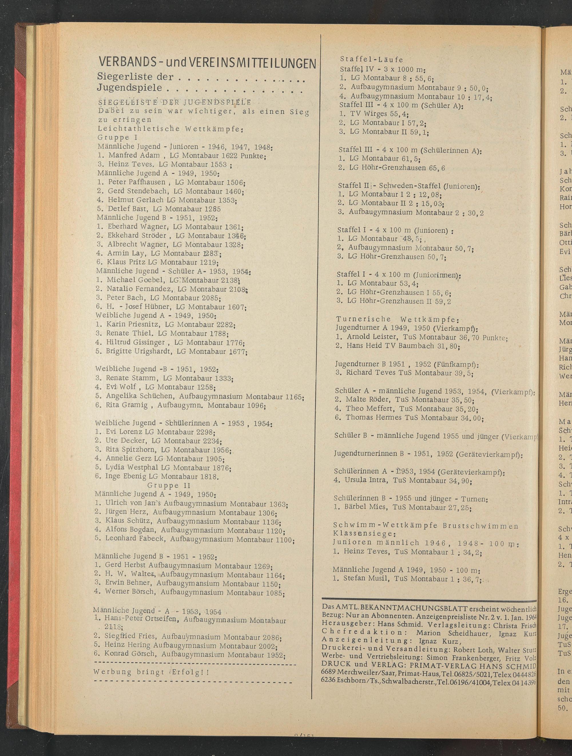 Das AMTL. BEKANNTMACHUNGSBLATT erscheint wöchentlich Bezug: Nur an Abonnenten. Anzeigenpreisliste Nr. 2 v. 1. Jan. 1964 Herausgeber: Hans Schmid. Verlagsleitung: Christa Frisch Chefredaktion: Marion Scheidhauer, Ignaz Kurz Anzeigenleitung: Ignaz Kurz,