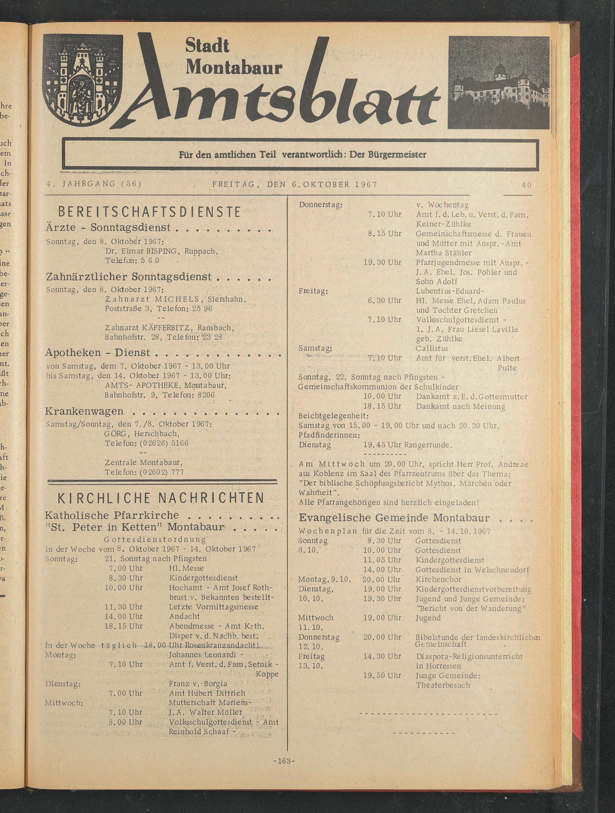 Wochenplan für die Zeit vom 8. -14.10.1967