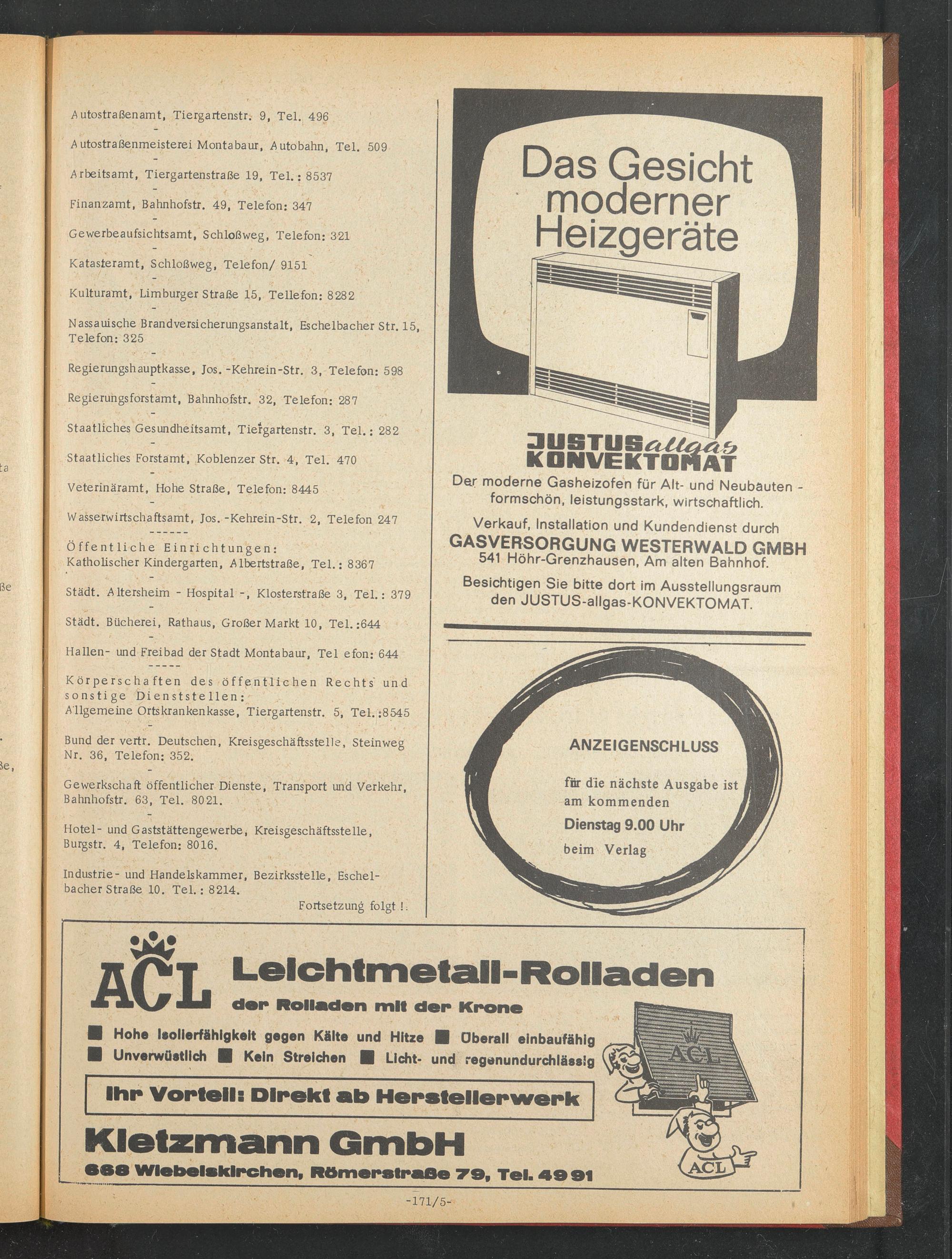 Kulturamt, Limburger Straße 15, Tellefon: 8282