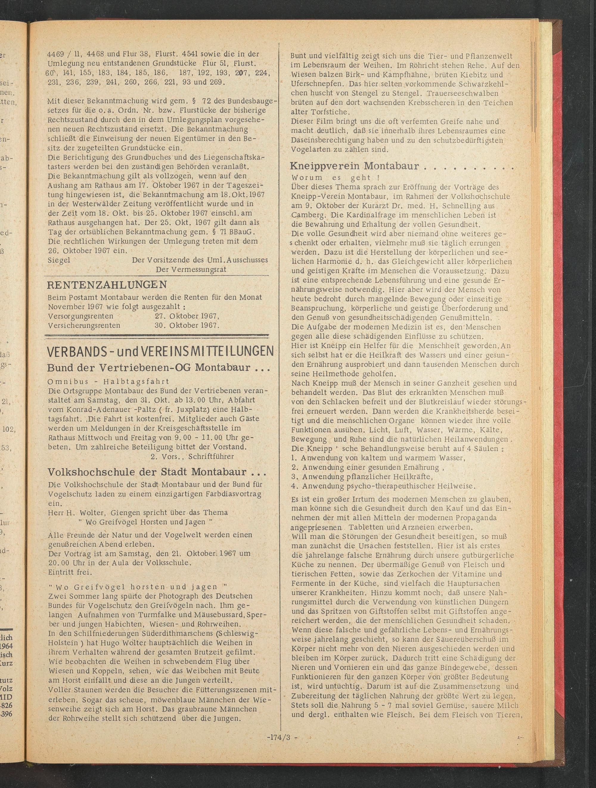 Beim Postamt Montabaur werden die Renten für den Monat November 1967 wie folgt ausgezahlt :
