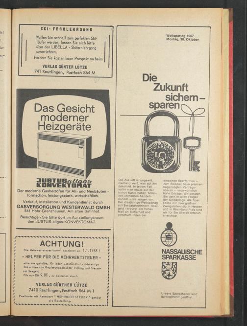 Weltspartag 1967 Montag, 30. Oktober