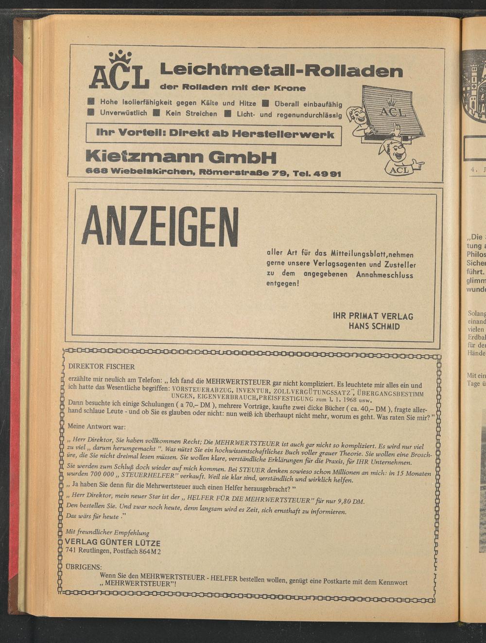 UNGEN, EIGENVERBRAUCH,PREISFESTIGUNG zum 1. 1. 1968 usw.