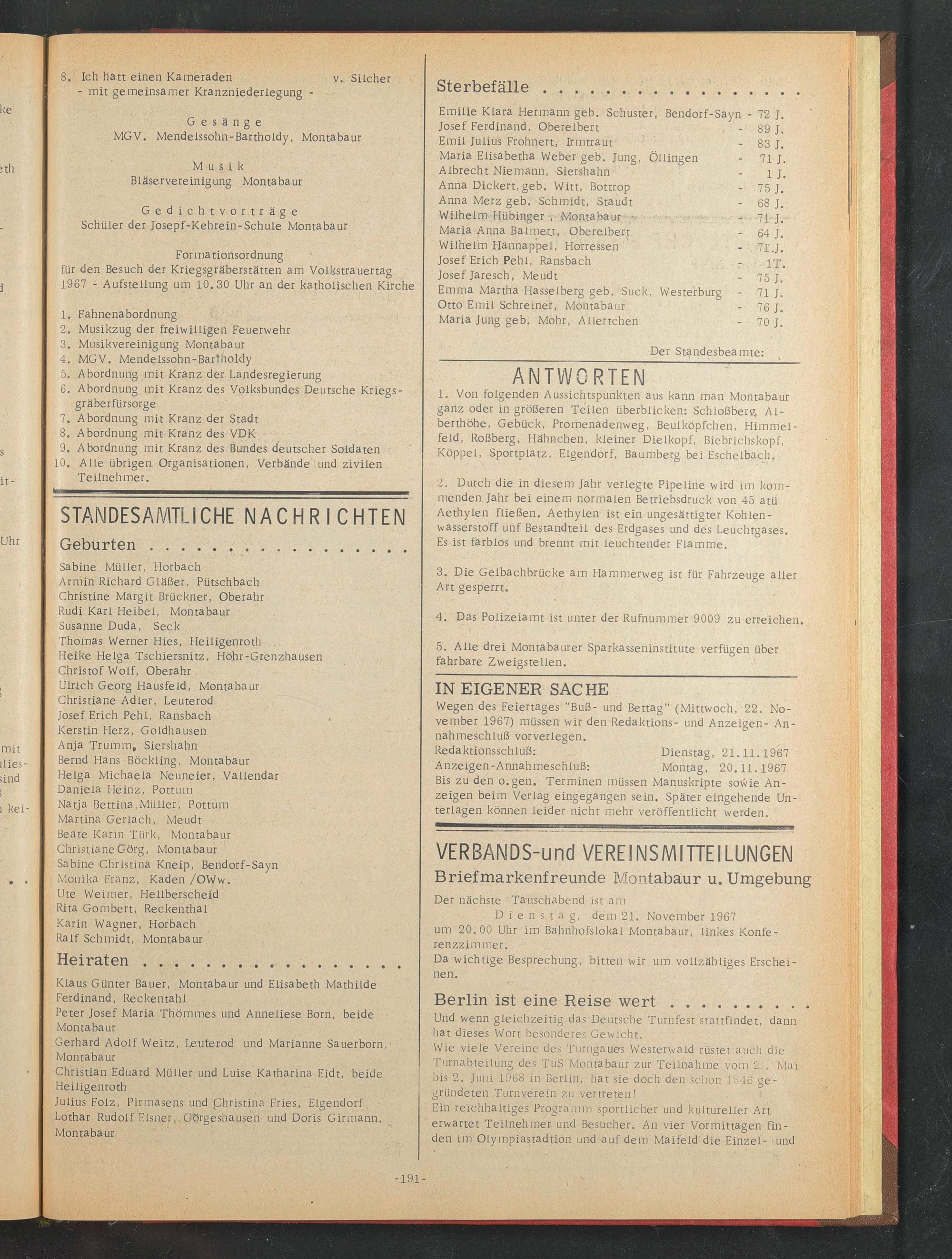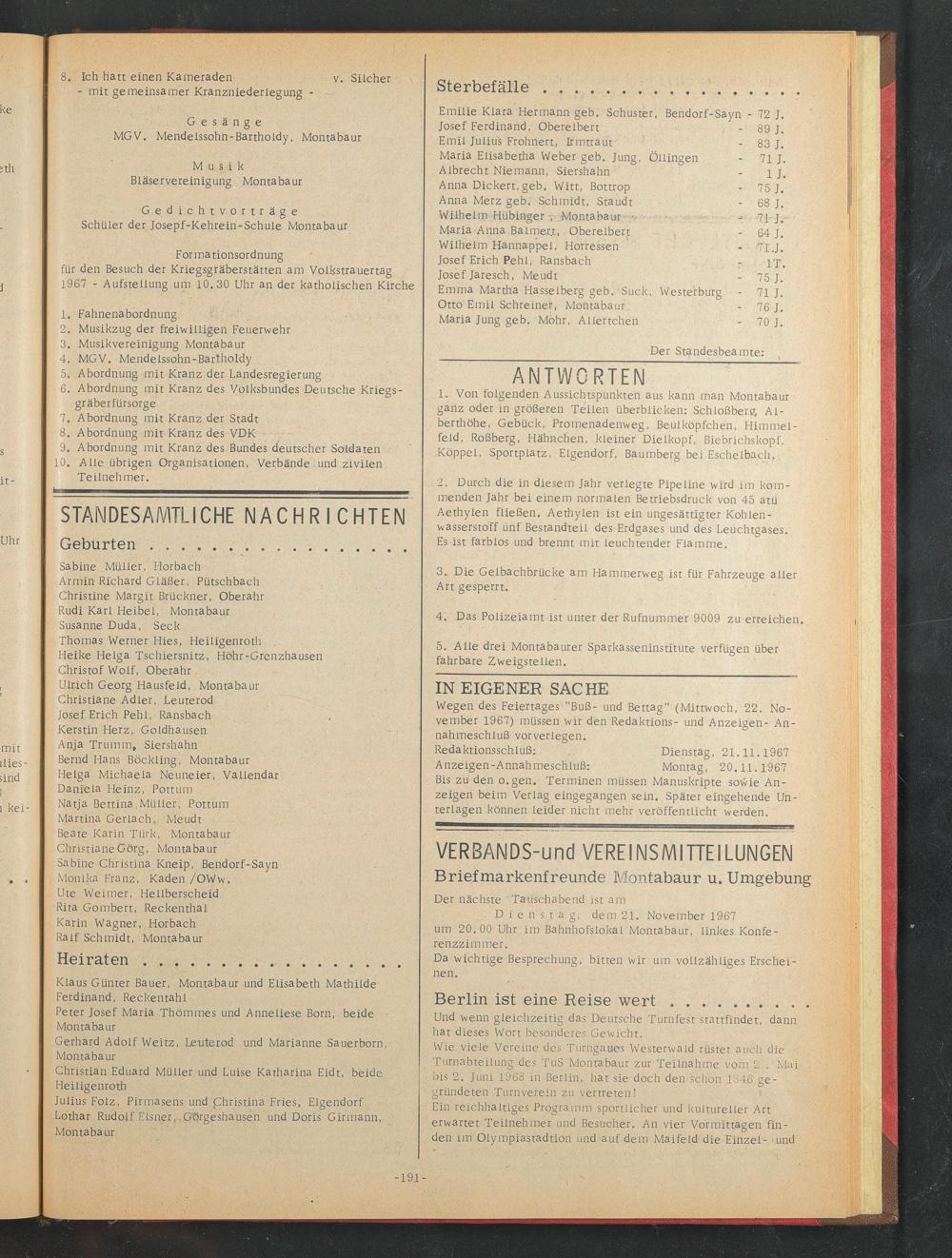 Dienstag, dem 21. November 1967 um 20.00 Uhr im Bahnhofslokal Montabaur, linkes Konferenzzimmer.