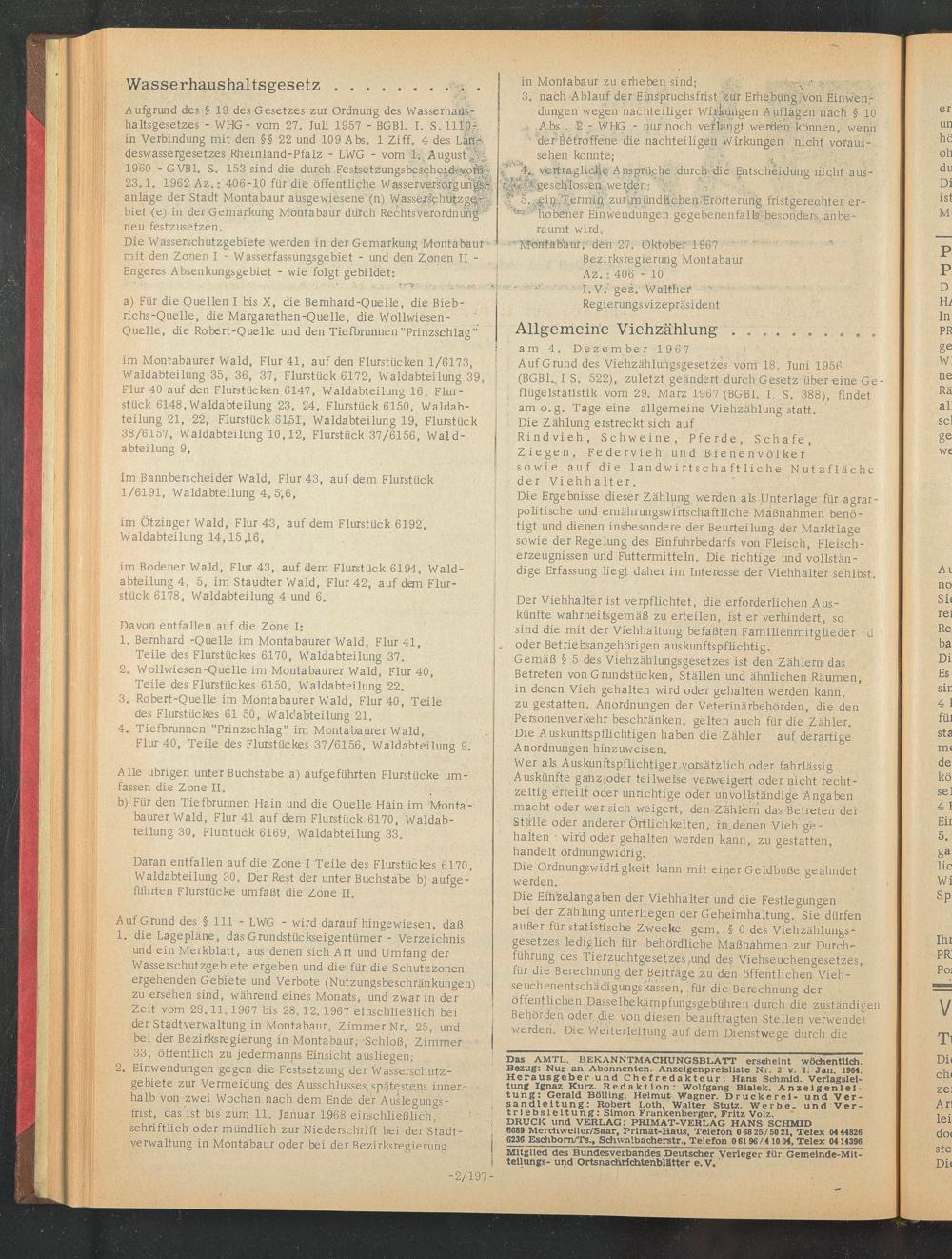 2. Einwendungen gegen die Festsetzung der Wasserschutzgebiete zur Vermeidung des Ausschlusses,späteste,ns innerr halb von zwei Wochen nach dem Ende der Auslegungsfrist, das ist bis zum 11. Januar 1968 einschließlich, schriftlich oder mündlich zur Niederschrift bei der Stadtverwaltung in Montabaur oder bei der Bezirksregierung