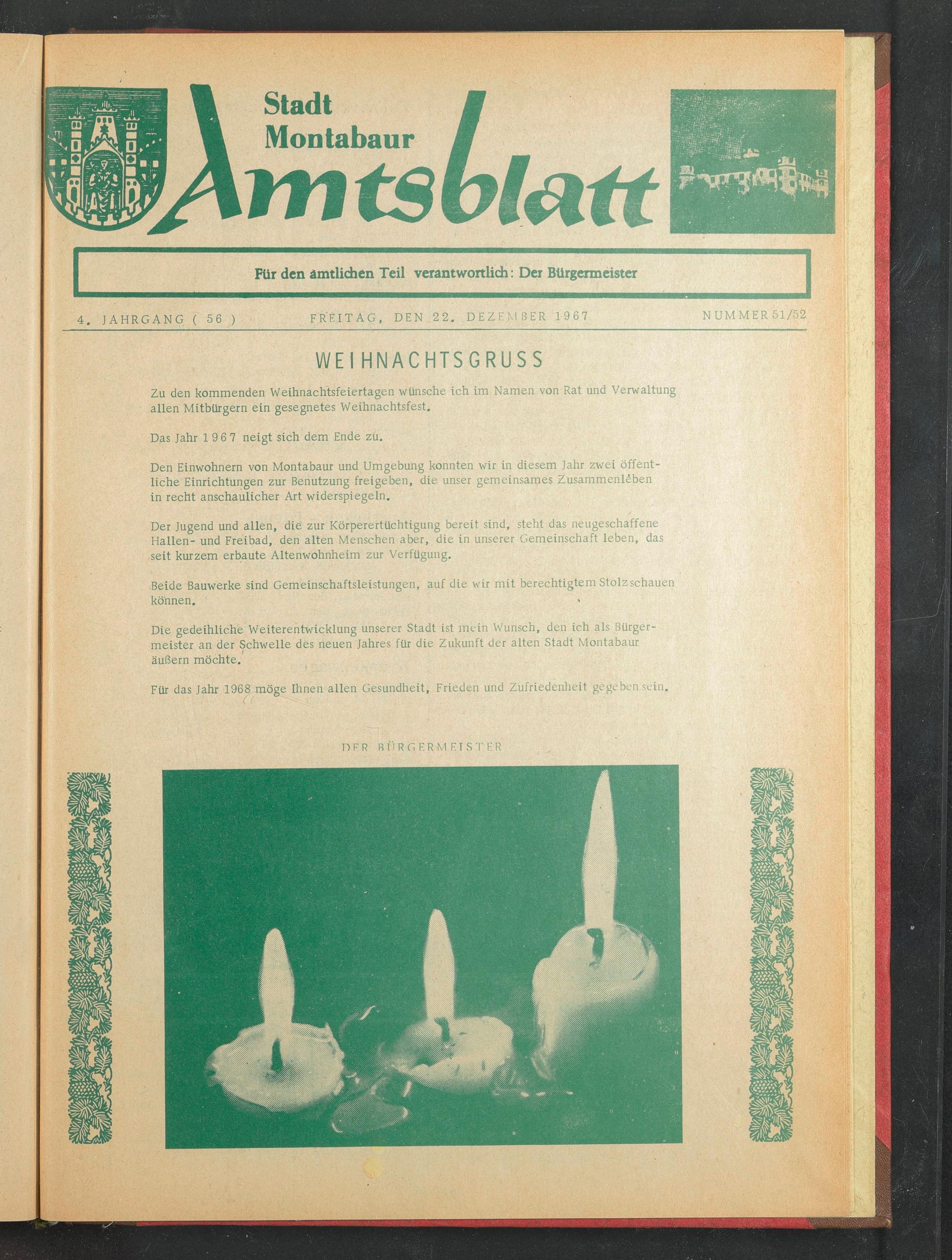 Für das Jahr 1968 möge Ihnen allen Gesundheit, Frieden und Zufriedenheit gegeben sein.
