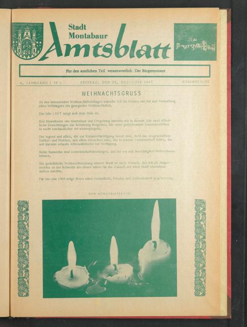 Zu den kommenden Weihnachtsfeiertagen wünsche ich im Namen von Rat und Verwaltung allen Mitbürgern ein gesegnetes Weihnachtsfest.