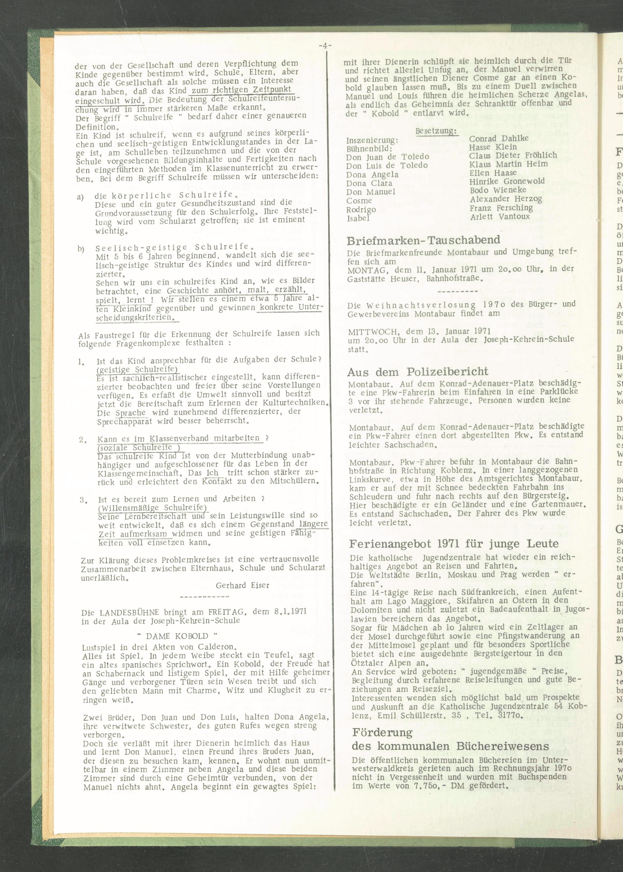 Die LANDESBÜHNE bringt am FREITAG, dem 8.1.1971 in der Aula der Joseph-Kehrein-Schule