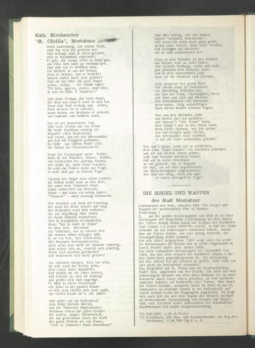 2. auf der großen Kirchenglöcke von 1668 ist in einer Wiedergabe des Siegelbilds I (Zeichnung bei den Akten) der Trierer Schild rechts durch das Wappen des Kurfürsten Carl Caspar v.d.Leyen (1652-76) ersetzt, so daß der linksstehende als das Stadtwappen erscheinen könnte, zumal ihm als Trierer Schild, wie Liel richtig bemerkt, die Vorrangstellung rechts zukäme.