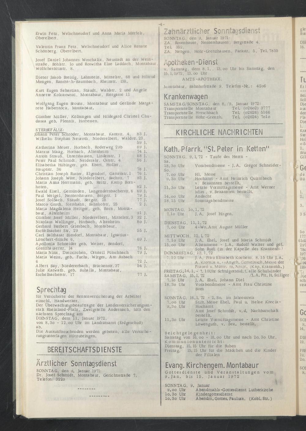 A, Kromik n..+ :Angeh. Gerneinsch. Messe der Frauen u. Mütte; m. Anspr. (Kap. Krankenh.) FREITAG,14.1. - 7. lOUhr Srfrulgottesd. f. alle SchulKinder SAMSTAG, 15.1.72 /J. A. Pir. H. Stillger