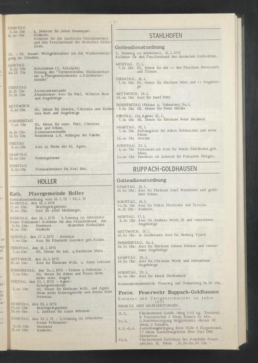 SONNTAG, den 16.1.1972 - 2.Sonntag im Jahreskreis Keine Frühmesse! Kollekte für den Familienbund der