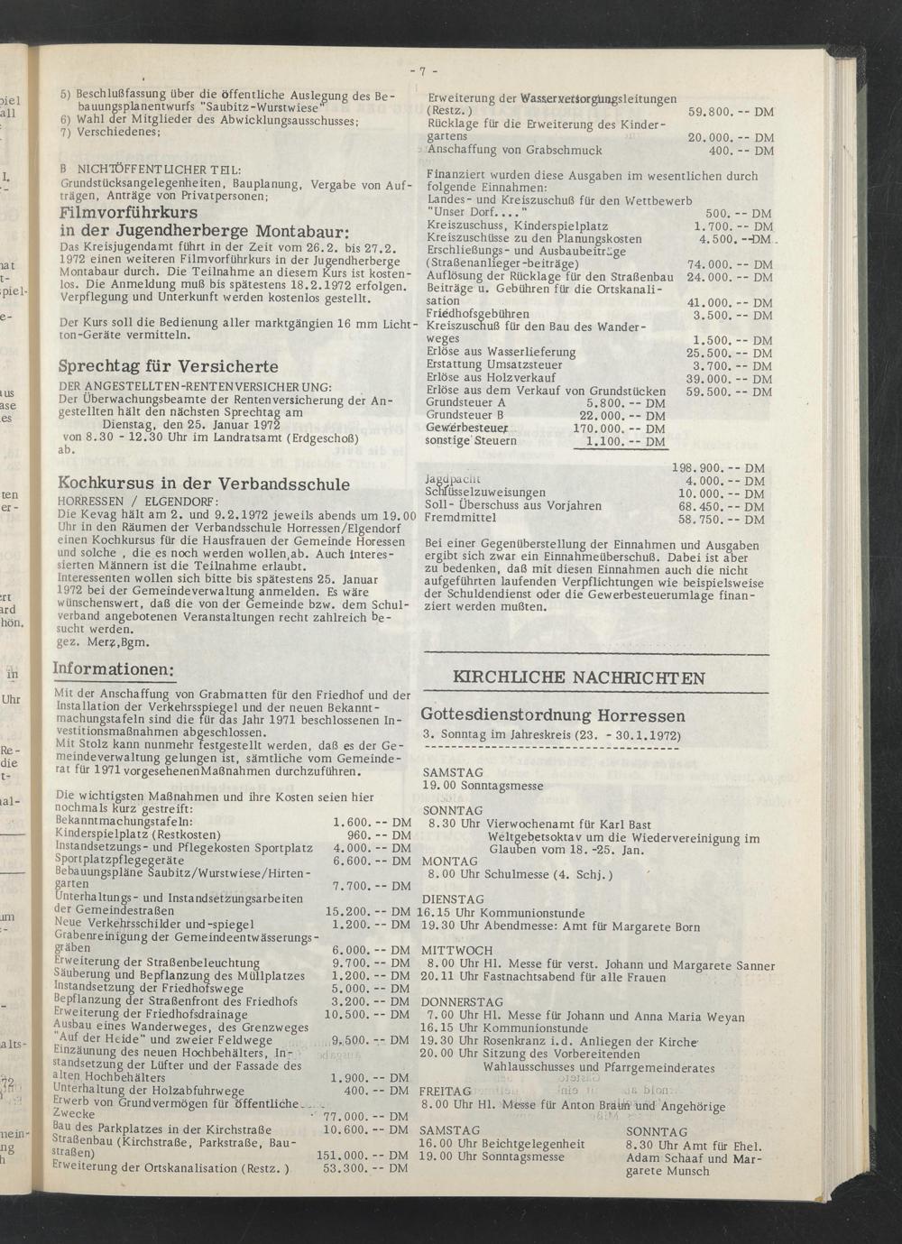Interessenten wollen sich bitte bis spätestens 25. Januar 1972 bei der Gemeindeverwaltung anmelden. Es wäre wünschenswert, daß die von der Gemeinde bzw. dem Schulverband angebotenen Veranstaltungen recht zahlreich besucht werden, gez. Mer?,Bgm.