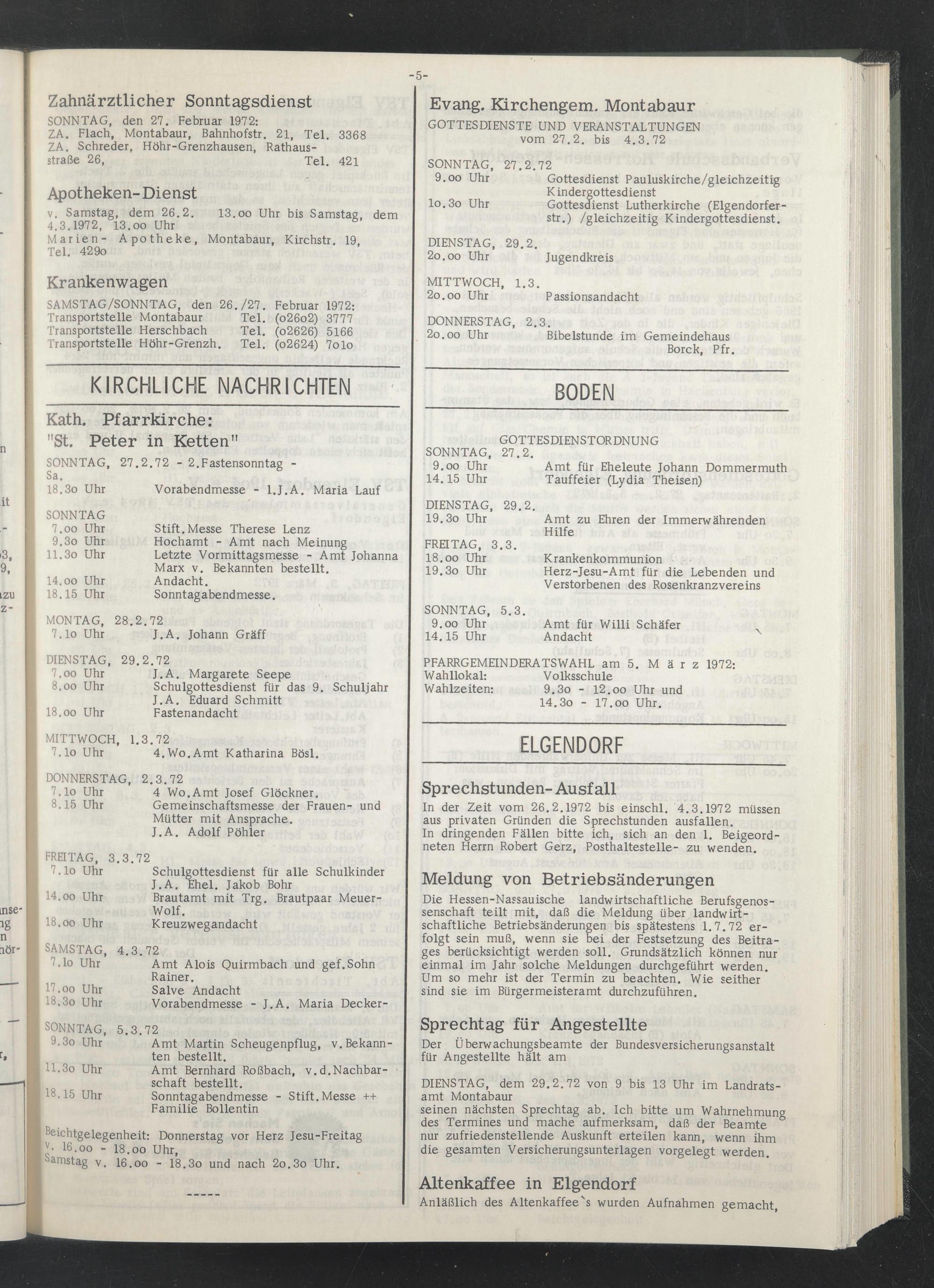 GOTTESDIENSTE UND VERANSTALTUNGEN vom 27.2. bis 4.3.72