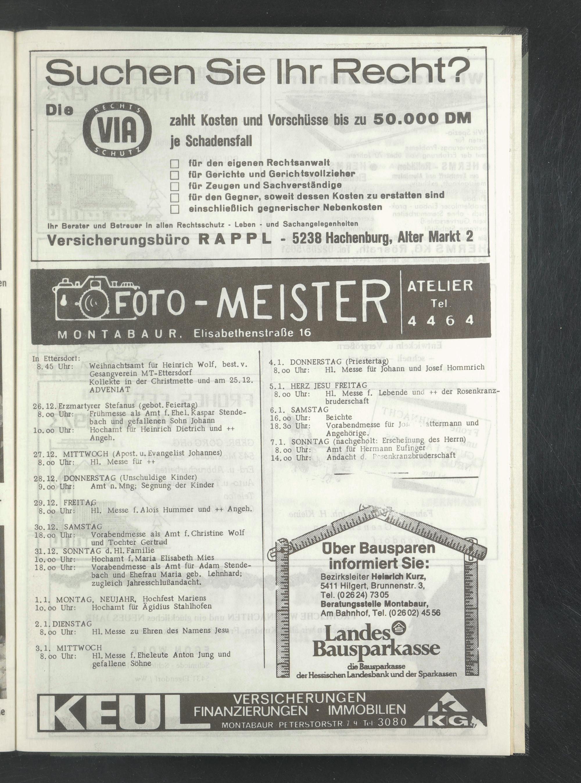 bach und gefallenen Sohn Johann lo. oo Uhr: Hochamt für Heinrich Dietrich und ++