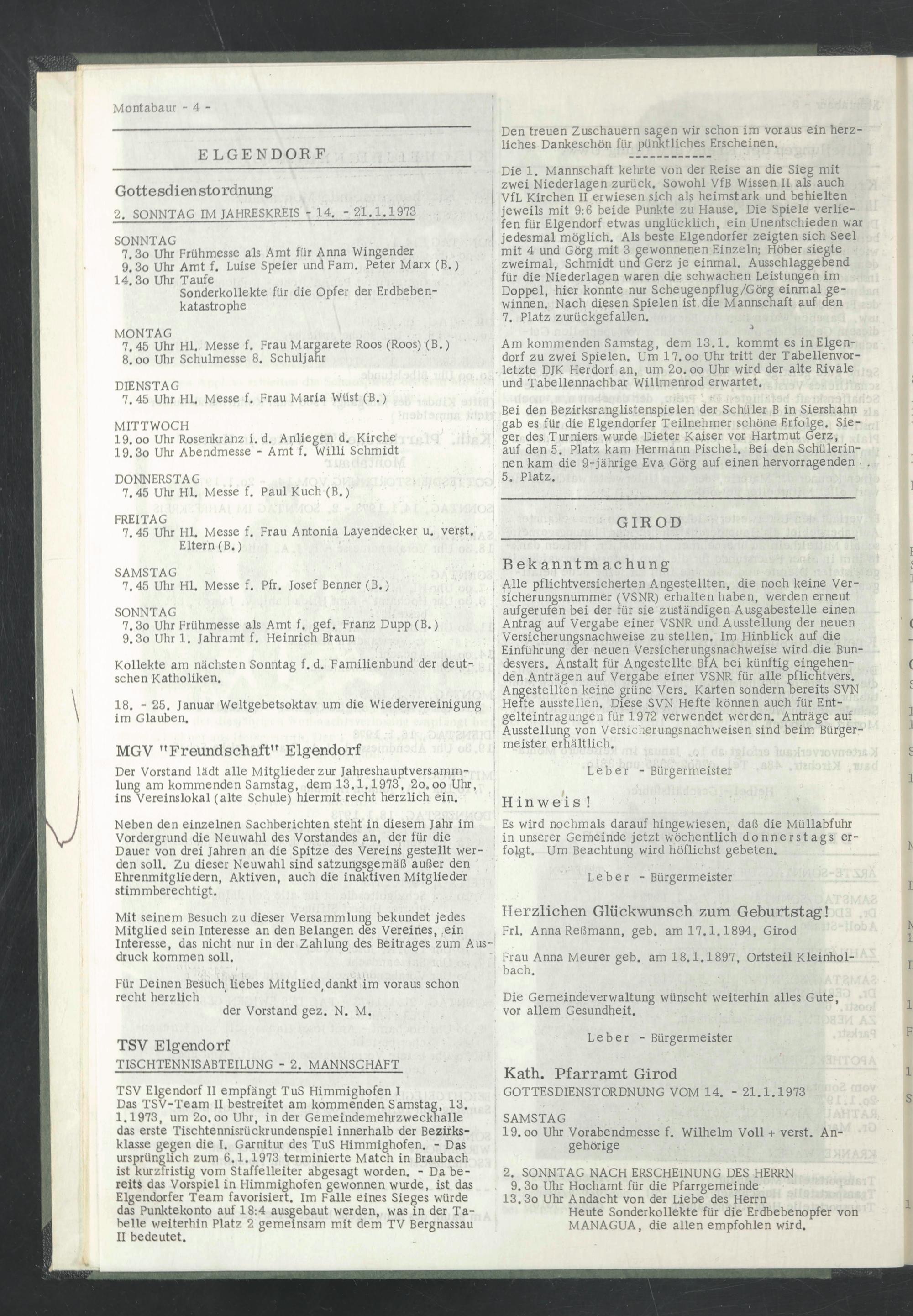 GOTTESDIENSTORDNUNG VOM 14. - 21.1.1973