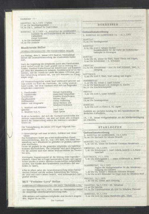 Am Freitag, dem 5. Januar 1973 fand im Vereinslokal Heibel die Generalversammlung des Musikverein Holler statt.