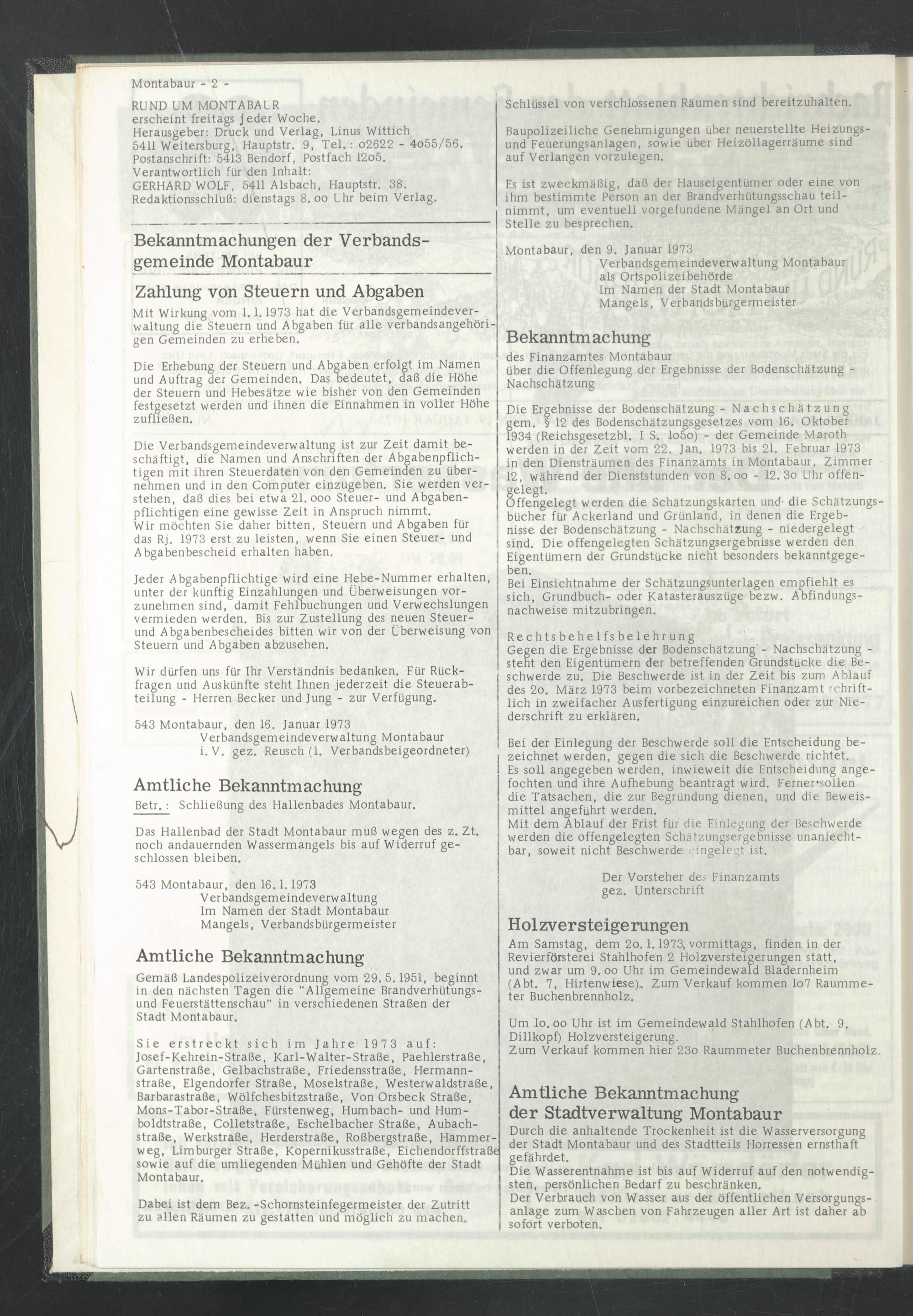 Amtliche Bekanntmachung der Stadtverwaltung Montabaur