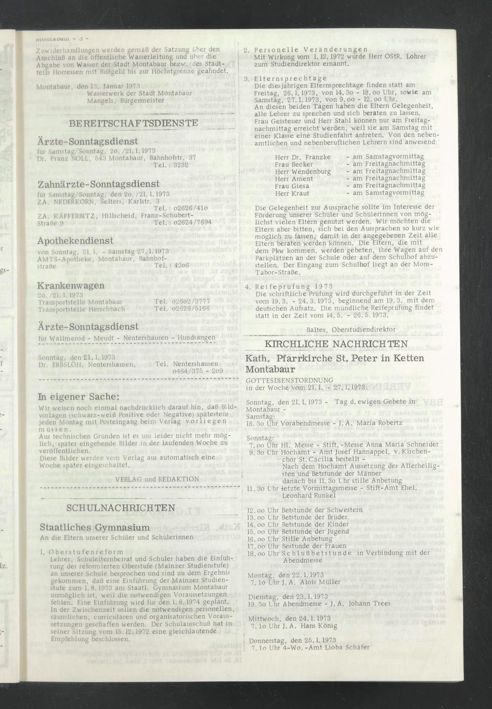 Montabaur, den 13. Januar 1973