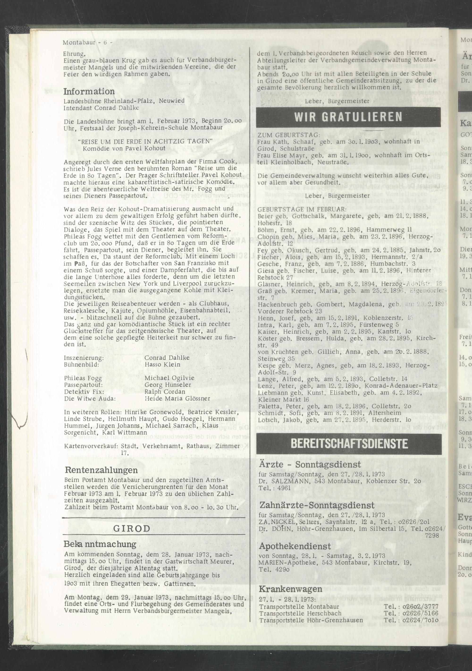 von Sonntag, 28.1. - Samstag, 3.2.1973 MARIEN-Apotheke, 543 Montabaur, Kirchstr. 19,