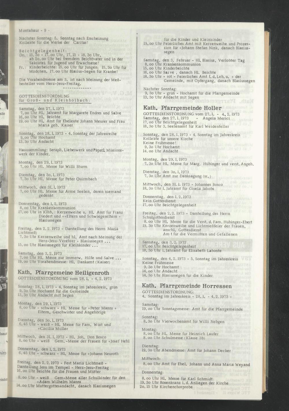 Sonntag, den 28.1.1973 - 4. Sonntag im Jahreskreis Kollekte für unsere Kirche Keine Frühmesse!