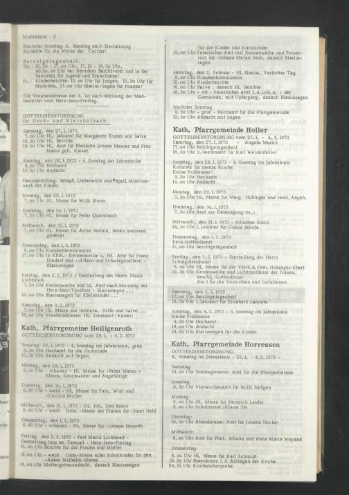 Sonntag, den 4.2.1973 - 5. Sonntag im Jahreskreis Keine Frühmesse 9. 3o Uhr Hochamt 14.oo Uhr Andacht