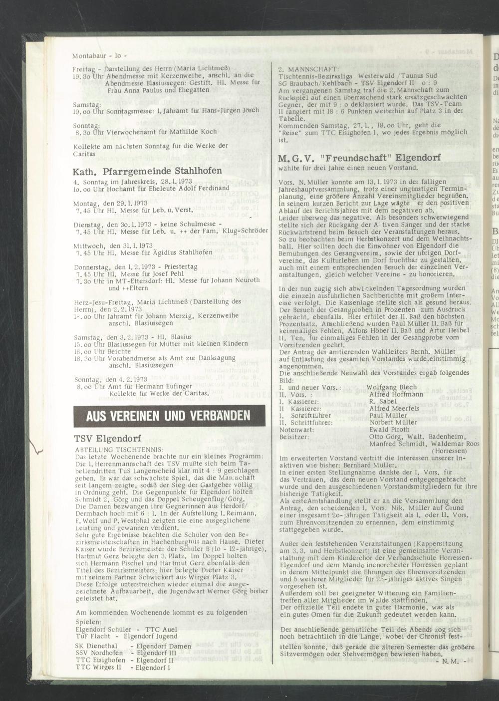Sonntag, den 4. 2.1973 8.oo Uhr Amt für Hermann Eufinger
