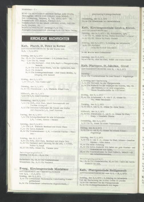 GOTTESDIENSTE und VERANSTALTUNGEN vom 11.2. - 17.2.1973: