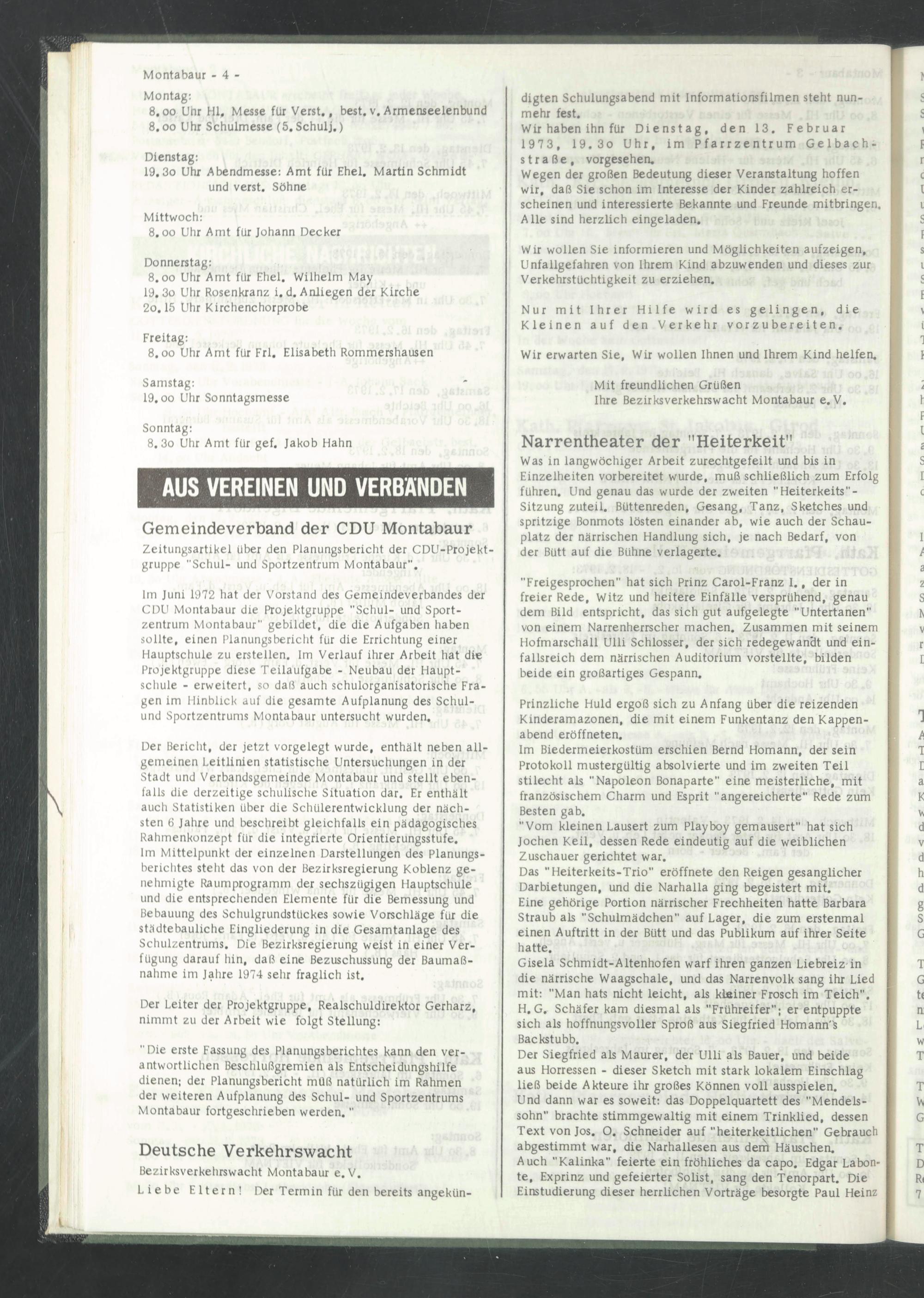 Zeitungsartikel über den Planungsbericht der CDU-Projekt- gruppe "Schul- und Sportzentrum Montabaur".