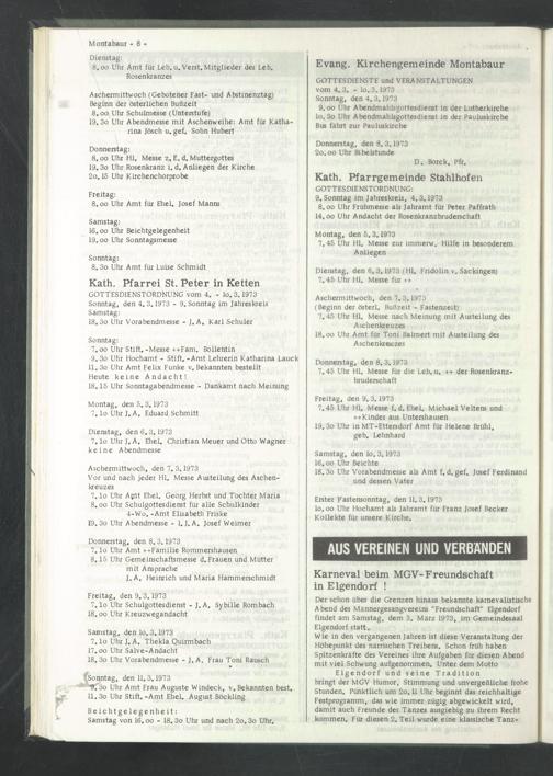 9. Sonntag im Jahreskreis, 4. 3.1973 8 .oo Uhr Frühmesse als Jahramt für Peter Paffrath 14.oo Uhr Andacht der Rosenkranzbruderschaft