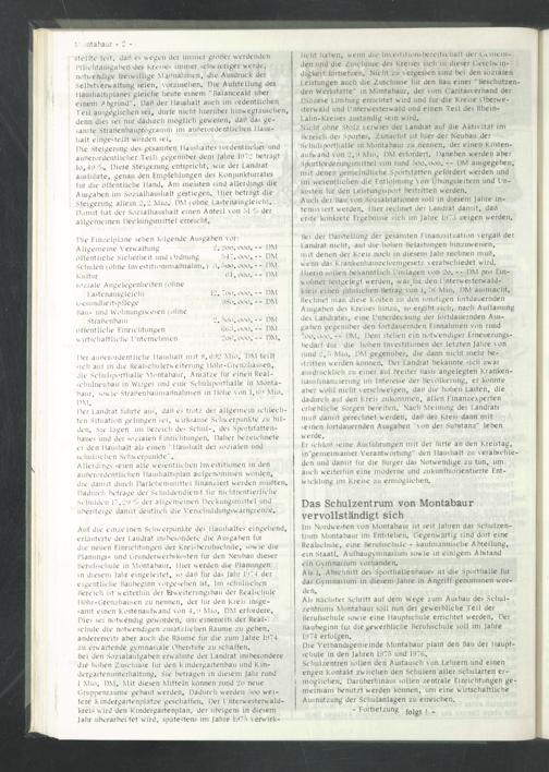 Die Verbandsgemeinde Montabaur plant den Bau der Hauptschule in den Jahren 1975 und 1976.