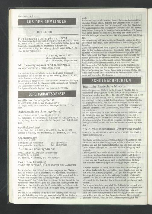 SONNTAG, den 18.3.1973 - SAMSTAG, den 24.3.1973 Rathaus-Apotheke, 543 Montabaur, Gr. Markt,8, Tel.3426.