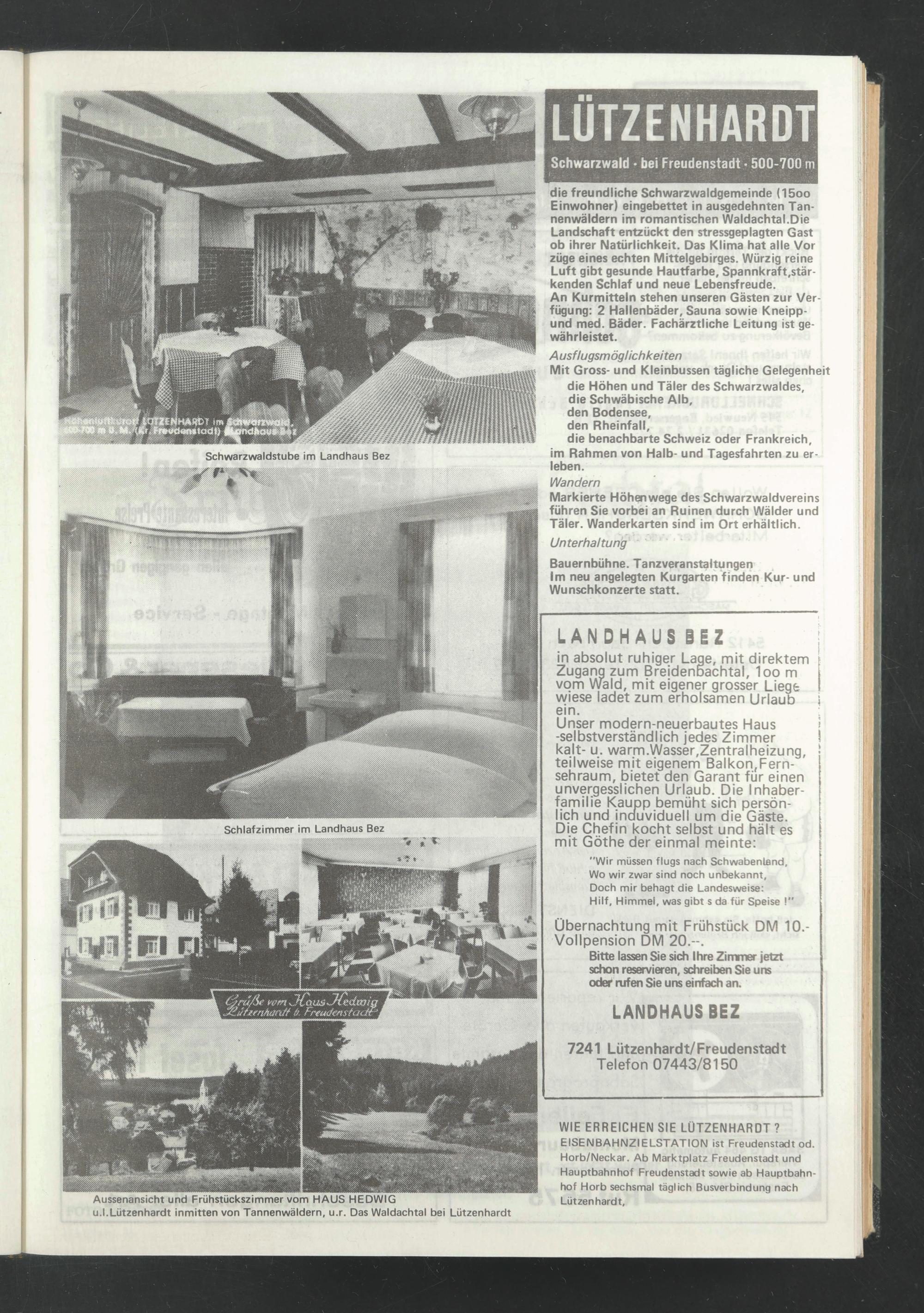 7241 Lützenhardt/Freudenstadt Telefon 07443/8150
