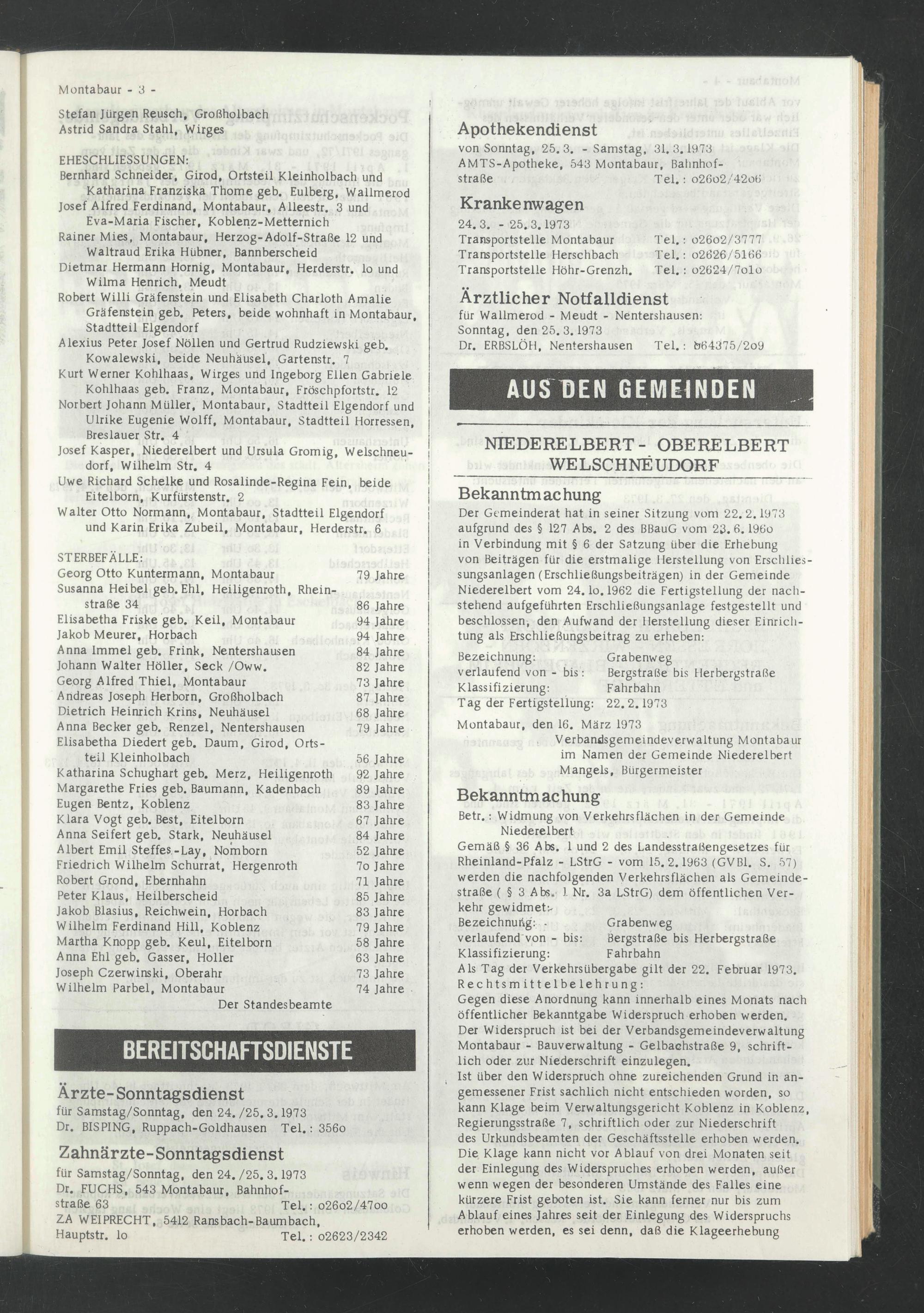 Montabaur, den 16. März 1973