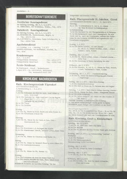 von Sonntag, 1.4. - Samstag, 7.4.1973 MARIEN-Apotheke, 543 Montabaur, Kirchstr. 19,